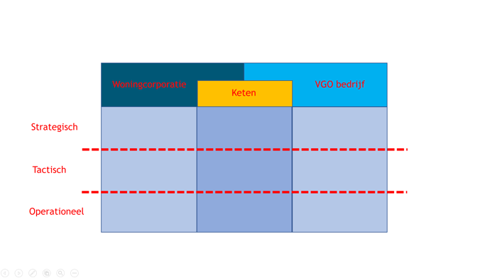 De ontwikkeling naar verdere samenwerking in de keten betekent voor woningcorporaties iets anders dan voor vastgoedonderhoudsbedrijven. Steeds vaker zijn zij samen onze opdrachtgever, bijvoorbeeld voor het evalueren van hun project of ketensamenwerking. Daarom hebben we verschillende trajecten ontwikkeld. Deze trajecten worden afgestemd op uw specifieke situatie. Wie bent u, wie wilt u zijn en via welke tussenstappen kunnen we daar komen? Hierbij speelt altijd kennis- en organisatieontwikkeling een rol.