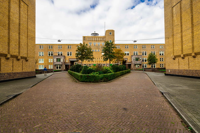 Vernieuwend waren de gemeenschappelijke voorzieningen, groene binnenterreinen en de revolutionaire ‘bovenstraat’: een ruim twee meter brede galerij, waaraan de voordeuren grenzen van de bovenwoningen. Zo’n verhoogde woonstraat was in Nederland nooit eerder toegepast en heeft grote invloed gehad op de architectuur. Het rijksmonument Justus van Effen ontleent hieraan zijn internationale faam.
